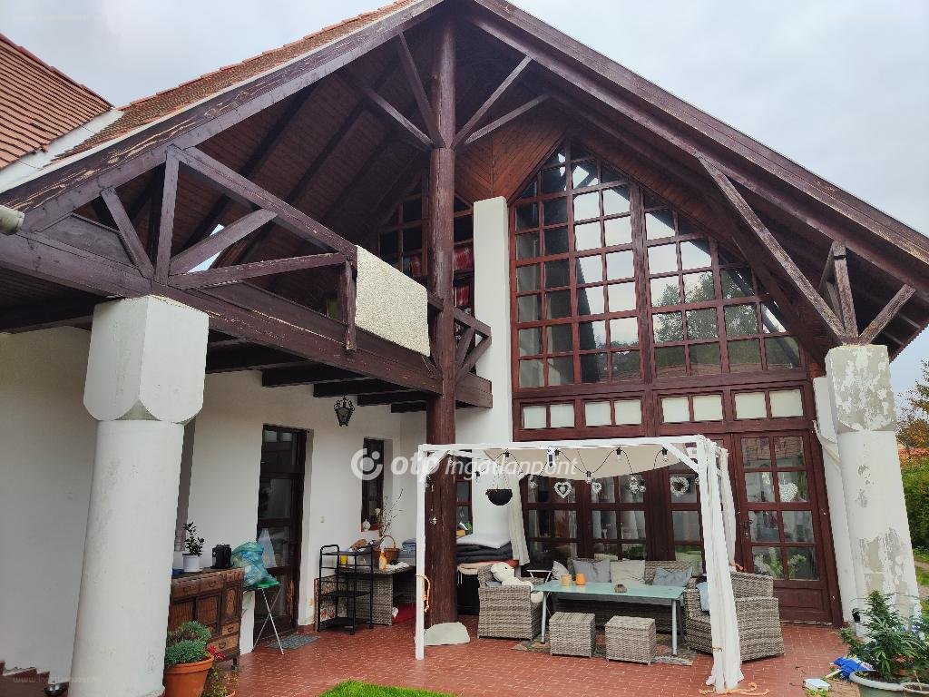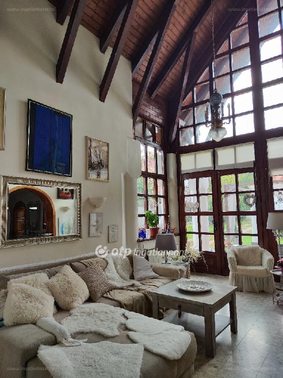 "Nagykovácsi Ófaluban eladóvá vált egy 1993-ban épült Makovecz kúria 3340 nm-es ősfás kerttel. Az ingatlan 3 épületből áll, fő lakóépülete 207 nm, nappali+ 5 szobás, az udvarról hangulatos tornácon át tudjuk a bejáratot megközelíteni. Nagy méretű nappalija napfényes, impozáns, nagy belmagasságú, terasz és kertkapcsolatos. Fűtése gáz cirkó, és kandalló. A nagyobbik vendégház 130 nm-es, nappali+4 szoba, a kisebbik 70 nm, nappali+2 szoba, jelenleg ezekben bérlők laknak.