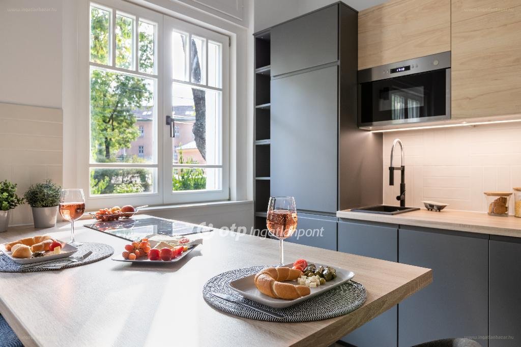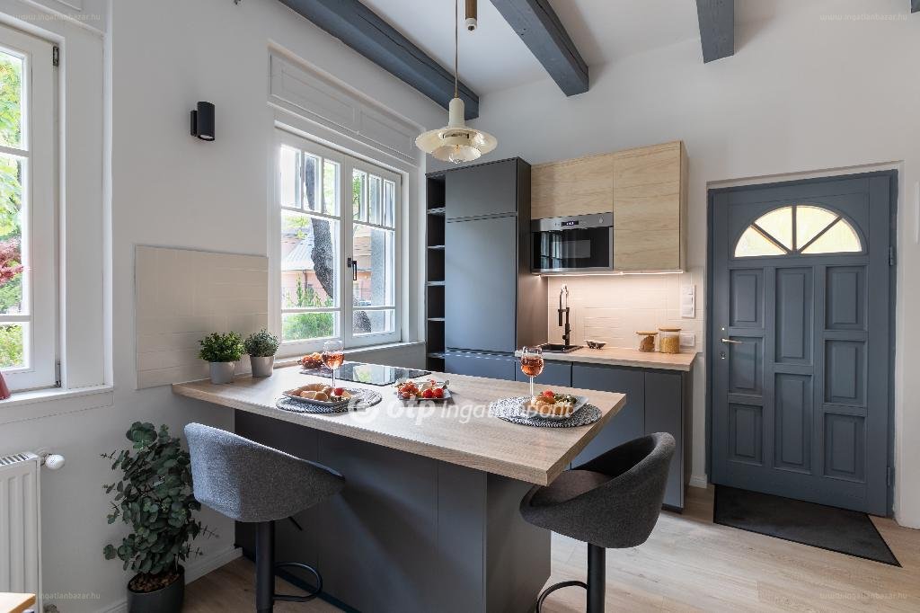 A ház kialakításánál elsődleges szempont volt a 100 éves műemlékvédett Wekerletelep értékeinek védelme, azok kihangsúlyozása vegyítve a modern kor kényelmi megoldásaival. A lakásba lépve egyből elénk tárul a jellegzetes wekerlei fafödém szerkezet, mely szürke színt kapott, illetve a társasház egykori építész terve, ami a földszint teljes szemközti falát díszíti. Az itt található konyha beépített hűtővel, mosogató géppel, mikrohullámú sütővel, indukciós főzőlappal és villanysütővel felszerelt. Ebben a térben kapott helyet a dolgozó sarok is az ablak előtt, mely egész nap világos és így nagyon kényelmes teret ad az otthoni munkavégzéshez.