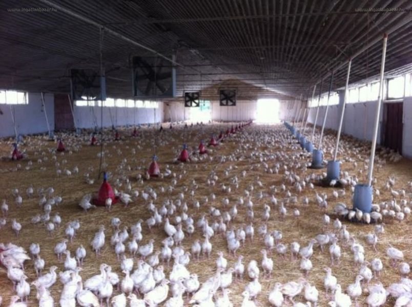 A bejárattól balra minden igényt kielégítő, berendezett lakóház, irodaépület, egy épületegységet alkotva a műhely és tároló épületrészekkel. Az ingatlan középső részén található a 4 db pulykanevelő istálló, illetve egy teljesen felújított épület,ami a tulajdonos jelenlegi lakóháza. Valamennyi épület és építmény mellett ipari igénybevételre méretezett, vasbeton burkolatú út található. Állattartó istállók összes alapterülete 3850 m2 , beton burkolattal.