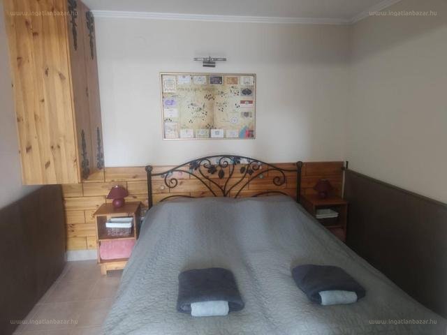 Nyílászárók eredeti fa. Burkolat laminált lap, kerámia. Fűtése gáz cirkó, hűtő- fűtő klíma. Meleg vizet 3 villany bojler biztosítja. Tetőtér része 10 cm--es kőzetgyapot szigetelést kapott. Udvari részen 19 nm Filagória, tároló, kert rész. Külön kialakítást kapott kemence, nyársaló, grillező, napozó rész. Udvaron ásott kút. 2021 Októberében került felszerelésre 6 KW Napelem, kamera rendszer. Parkolás az udvaron kényelmesen. Apartmanok bútorzata a vételár részét képezi. Amennyiben hirdetésem, fotók felkeltették érdeklődését keressen bizalommal. Kizárólag egyeztetett időpontban tekinthető meg. Tulajdonos kisebb építési telket, családi házat beszámít. [...]”