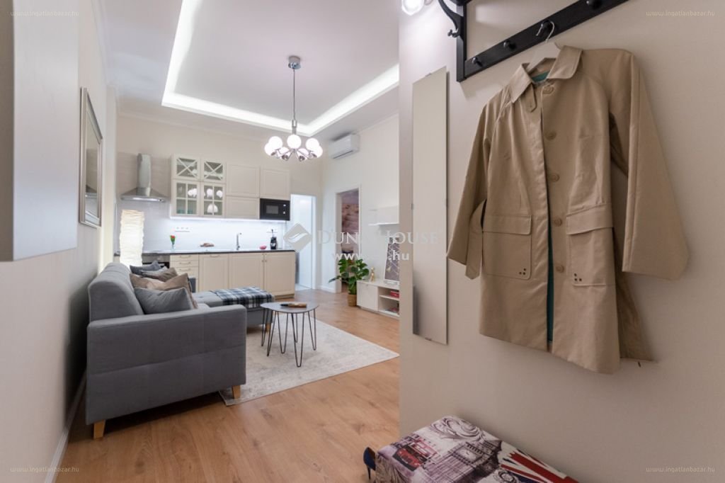 "Eladásra kínálunk egy igényesen felújított 40 m2 alapterületű társasházi lakást a belváros szívében. A lakást a Váci utcától karnyújtásnyira lévő Szervita tér és Deák tér közötti sétáló utcában érhetjük el. A társasház fél emeleti szintjén lévő lakás minden helyisége a belső udvarra néz. A hálószoba a délelőtti órákban napfényben úszik.