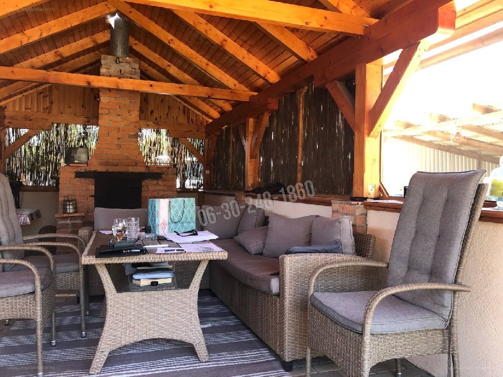 OTTHONOS, NAGY TERASZOS CSALÁDI HÁZ PARKOSÍTOTT UDVARRAL ELADÓ! A szomszédos épületektől kellemes távolságra helyezkedik el, kellő intimitást biztosítva a lakóknak. Külső és belső terei egyaránt a természetességet, otthonosságot hordozzák magukban. Ami külön értéknővelő az a megálmodott parkosított udvar ahol gyönyörű kemencés filagória és egy konyharész is szolgálja a tulajdonosok kényelmét. [...] Otthonosságot sugárzó belső terek jellemzik. Az előtérből egy tágas folyosó nyílik, itt találjuk a konyhát tárolóhelyiséggel , fürdőt , wc helyiséget és egy méretes nappalit. A nappaliból egy kisebb előtérbe lépünk ahonnan két nagy hálóhelyiség közelíthető meg. A hallból egy külön nyíló gardrób helyiséget is kialakítottak.