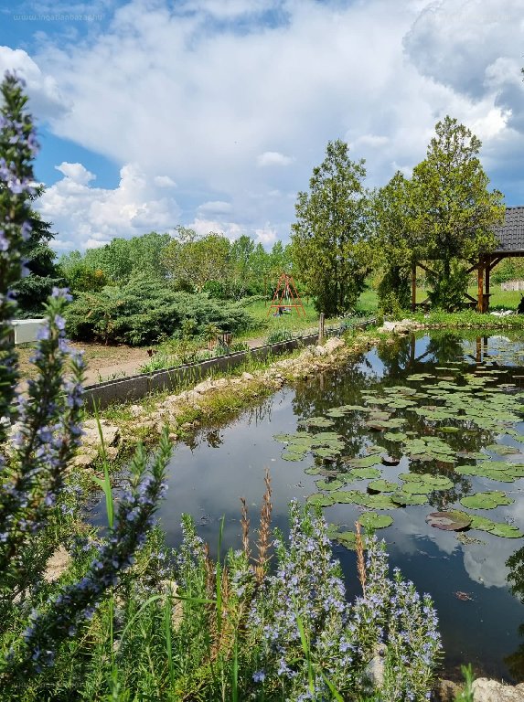 A főépületen kívül van a kazánház 10m2-es, valamint verem 6 m2. (kerti pince). A telken halastó és annak végében 60 nm-es térkövezett fedett terasz, amely családi rendezvények méltó színhelye lehet. 4 db fúrt kút áll rendelkezésre. Telek teljesen elkerített. A főépület mellett 80m2-es fedett autóbeálló található. Igény esetén bútorzattal is eladó.”