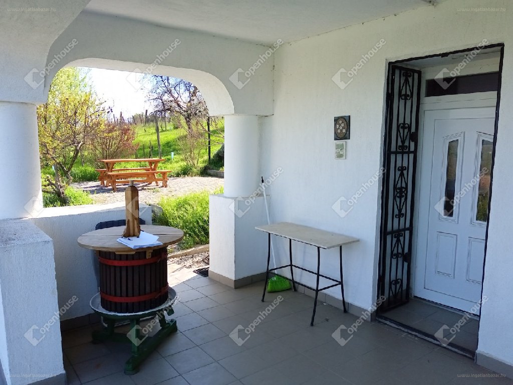 Az ingatlan zárt kerti besorolással rendelkezik, müvelési ágból kivett kategóriában. egy hosszúkás telken található mely nyugat-keleti fekvésü, alapterülete 2855m2. Terepe keleti irányban lejtős A telek alsó és felső részén közúthoz csatlakozik. Az ingatlan rendelkezik árammal,vízzel. A keletkező házi szennyvíz tárolására ,zárt rendszerű szennyvíztároló épült. Az épület előtt fúrt kút található. Az ingatlanon az ablakok fa és műanyag szerkezetűek.A melegvízellátás a fürdőben felszerelt elektromos bojleren keresztül biztosított.Az ingatlan alul járólapos,felül a szobák parketta burkolattal vannak lerakva. A felső konyha kerámia burkolattal van lerakva. Az ingatlan tetőtér beépítésű és hőszigetelt.Az épület pincével is rendelkezik. Az épület 88,37m2 és 3,3m belmagasságú.A földszinten van egy előtér mely 9,9m2 és kerámia lapburkolatú,valamint wc-mosdó 5,85m2 szintén kerámia lapburkolatú,tároló 10,58m2 szintén kerámia lapburkolatú, Az ingatlanhoz tartozik pince is mely 14,45m2 és simított aljzatbetonos.Az épületen tornác is található 9,20m2 és fagyálló burkolattal van ellátva. Az ingatlan tetőtér beépítésű amelyben található konyha-étkező 14,55m2 és kerámia lapburkolatos.Van még tartozkodótér 16,28m2 melyben elhelyezhető kinyithatós , kanapé és egy szoba 15,39m2, mindkettő helyiség parkettás. A tulajdonos a vételárat, 275 000 Euroban kéri kifizetni! [...]”
