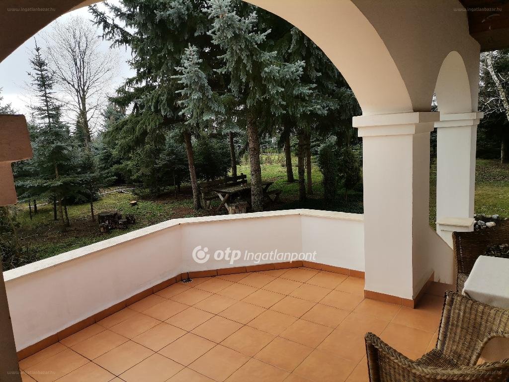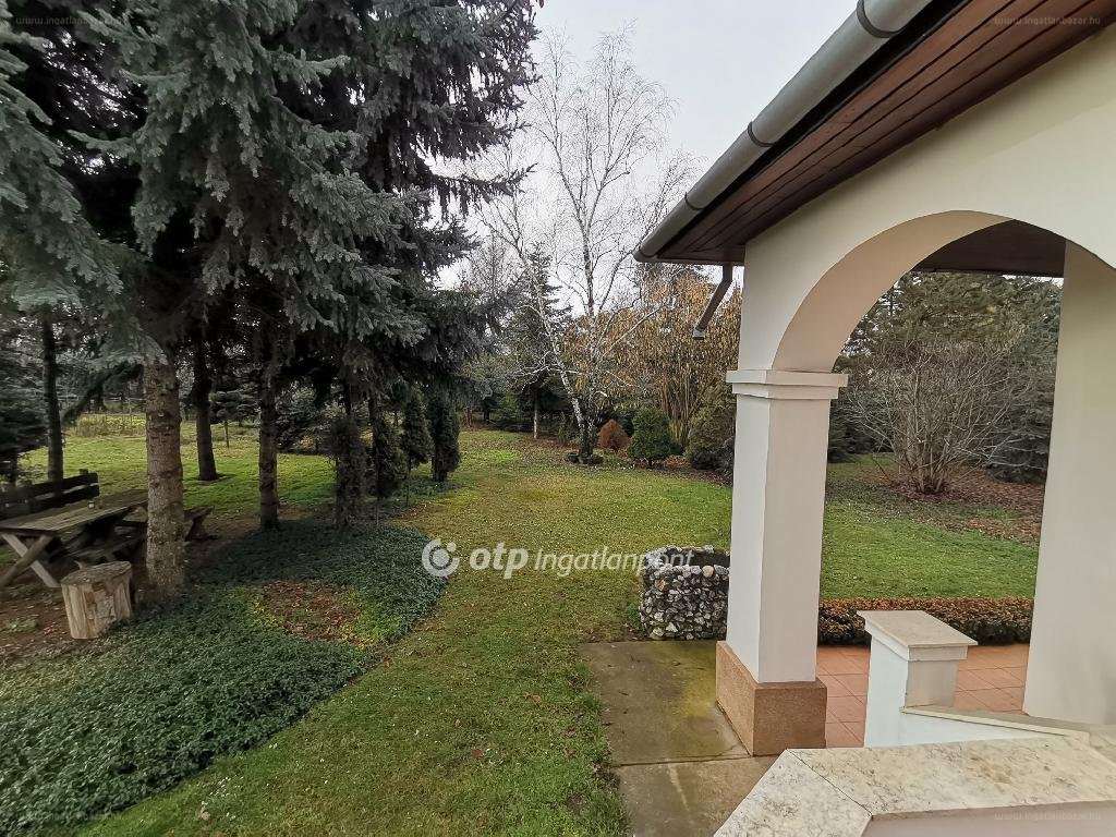 A lakóépületet övező telek 9000 m2 alapterületű, melyben örökzöldek, fenyőfák, tuják, és gyümölcsfák vannak telepítve. A kertben fúrt kút és víztározó biztosítja a növények szakszerű öntözését, ami akár medencévé is alakítható. Varázslatos fenyves erdővel és tujaparkkal rendelkező igényes építésű lakóház várja új tulajdonosát! [...]”