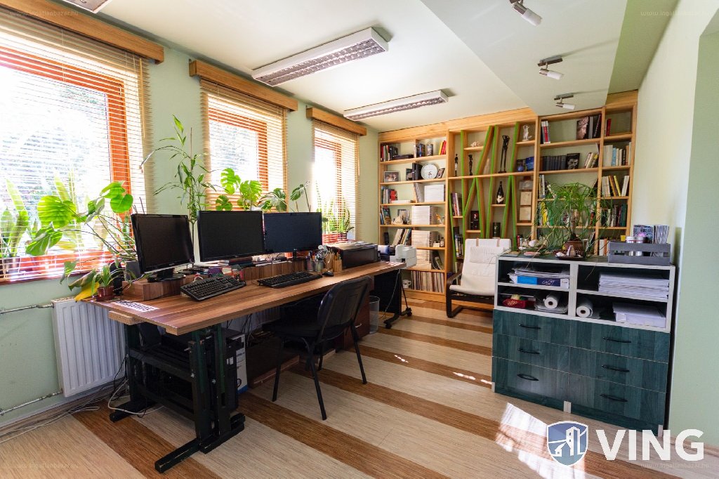 Az ingatlan 38 cm-es Porotherm tégla falazattal épült 10-12 cm-es hőszigeteléssel, a nyílászárók az egyik épületrészben fából, míg a másikban fahatású műanyagból készültek, a legjobb minőségben. A fűtésről 24 kW turbós gázkazán gondoskodik, 40 l-es melegvíztárolóval, iroda radiátoros hőleadókkal, a lakásrész radiátoros és padlófűtés külön szabályozással. Vegyes tüzelés kialakítására is van lehetőség, melyhez a kazánház és a kémény kialakításra került. Az ingatlan áramellátása 3 fázisról biztosított, emellett 4 kamerás riasztó rendszer is kiépítésre került.
