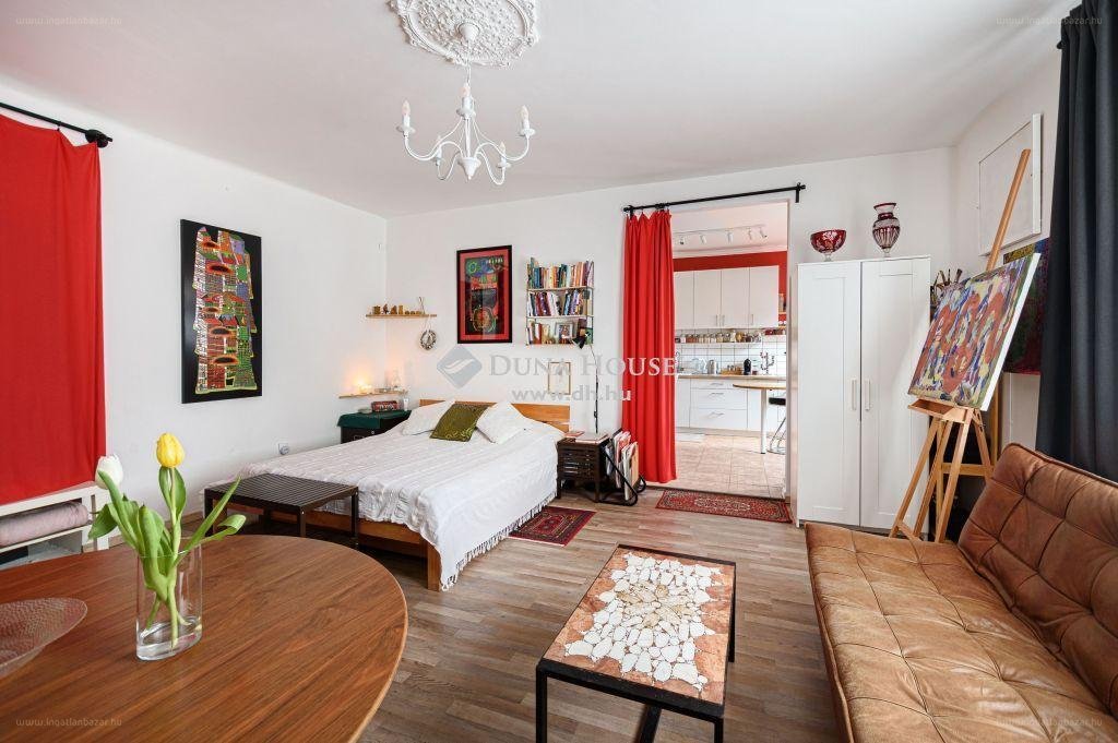 A 15 lakásos villaépület földszintjén kínálunk eladásra 44 m2-es, akadálymenetesen megközelíthető, teljes körűen felújított egyszobás lakást. Az egyedi készítésű fehér konyhabútor, fehér gránit mosogató a piros fallal modern és hangsúlyos része a lakásnak. A keleti tájolású nappaliból a sok zöldet, gesztenyefákat látni. A fűtés 4 db infra panellel működik. A buja kertbe közvetlen kapcsolat nyílik a lakásból. A kertben lévő padon órákon keresztül gyönyörködhetünk a látványban.