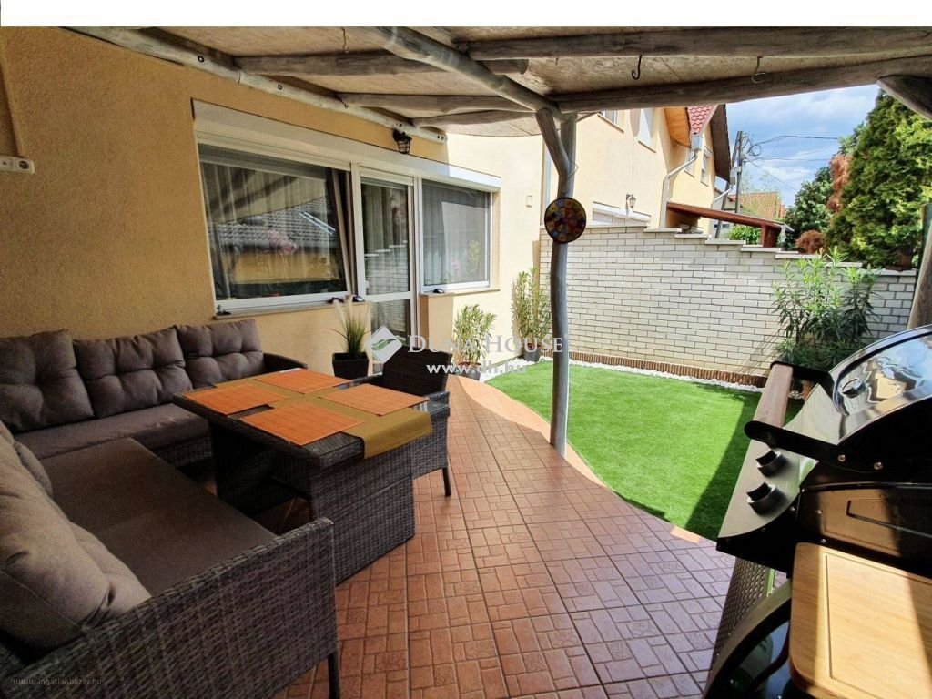 Az ingatlan kellemes délnyugati tájolású. Saját önálló garázzsal rendelkezik. A földszinten az előszobából belépve egy hatalmas amerikai konyhás nappali tárul elénk. Ezen a szinten található még egy mosdó helyiség is. Az emeleten 3 szoba, egy tágas közlekedő, illetve egy fürdőszoba található. Mindkét szint gyönyörűen karbantartott. A kert kiváló lehetőséget nyújt kinti grillezéshez, kikapcsolódáshoz. Ideális otthon fiatal pároknak, családosoknak mivel a környék csendes és biztonságos a lakóközösség pedig nagyon barátságos. [...]”