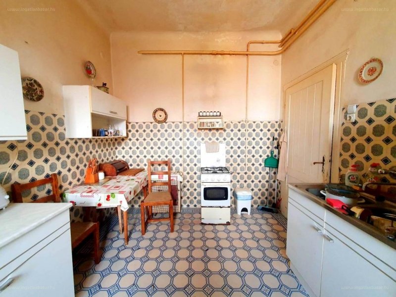 A lakás egy 1 emeleti napfényes ingatlan, mely kialakítását tekintve 4 szobából, hallból, beépített veradából, erkélybõl, konyhából, 2 kamrából, kádas fürdõszobából és egy külön illemhelyiségbõl áll. Az ingatlan teljeskörû felújítást igényel, viszont elképesztõ lehetõségek rejlenek benne: akár több szoba kialakítása, két lakássá alakítása is megoldható. Közös költsége: 28 600 Ft hó mely tartalmazza a vízfogyasztást. Fûtését konvektorok biztosítják, 2 villanyóra és 2 gázóra van így ezek a költségek egyedi mérõ alapján fizetendõ. Az ingatlan Per- és Tehermentes és maximum 3 hónapon belül birtokba vehetõ. Közlekedése kiváló, közelben Villányi út, Függetlenségi park: 17,41,61 villamosok, 53,150,154 buszok. [...]”