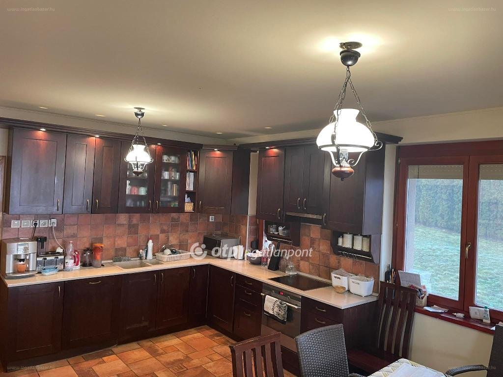 A konyha és étkező bükkfából készült, ahogyan a méretre készített szekrények is a szobákban, melyek a vételár részét képezik! A teraszról pazar panorámában tekinthetünk Miskolctapolca páratlan szépségére, míg a hátsó terasz az örökzöldekkel díszített hátsó kertre enged betekintést! Az emeleten 3 hálószoba, mosókonyha, tároló, külön helyiségben toalett és fürdőszoba. Minden szobában minőségi anyagból készült parketta , míg a többi helyiség mázas kerámia lappal burkolt. Nyílászárók hőszigetelt Borovi fenyőből készültek, ablakai redőnyökkel szereltek, a kellemes hőmérsékletet 5 db hűtő- fűtő klíma teszi teljessé! [...]”