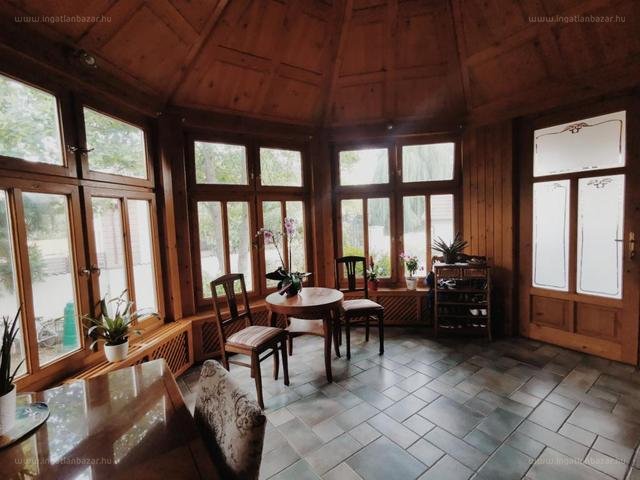 Fő épület: fszt: nappali+konyha-étkező (cserépkályha,+ padló fűtéssel), télikert. 1 szoba, fürdőszoba. +1 külön bejáratos apartman, ami a házból is nyillik. (30m2)
