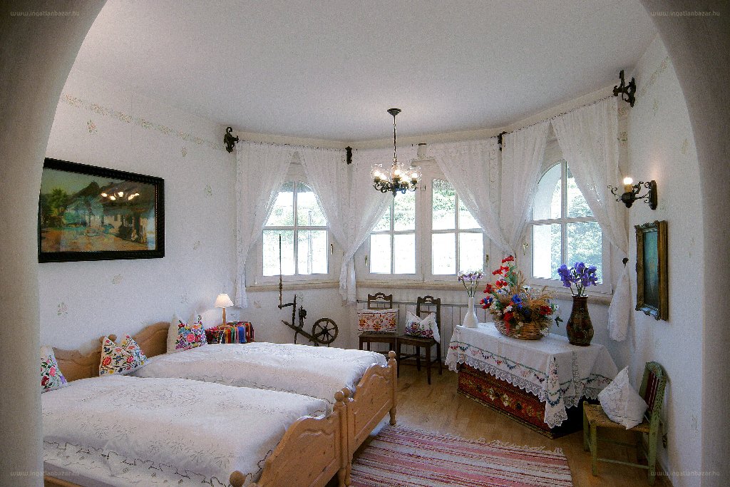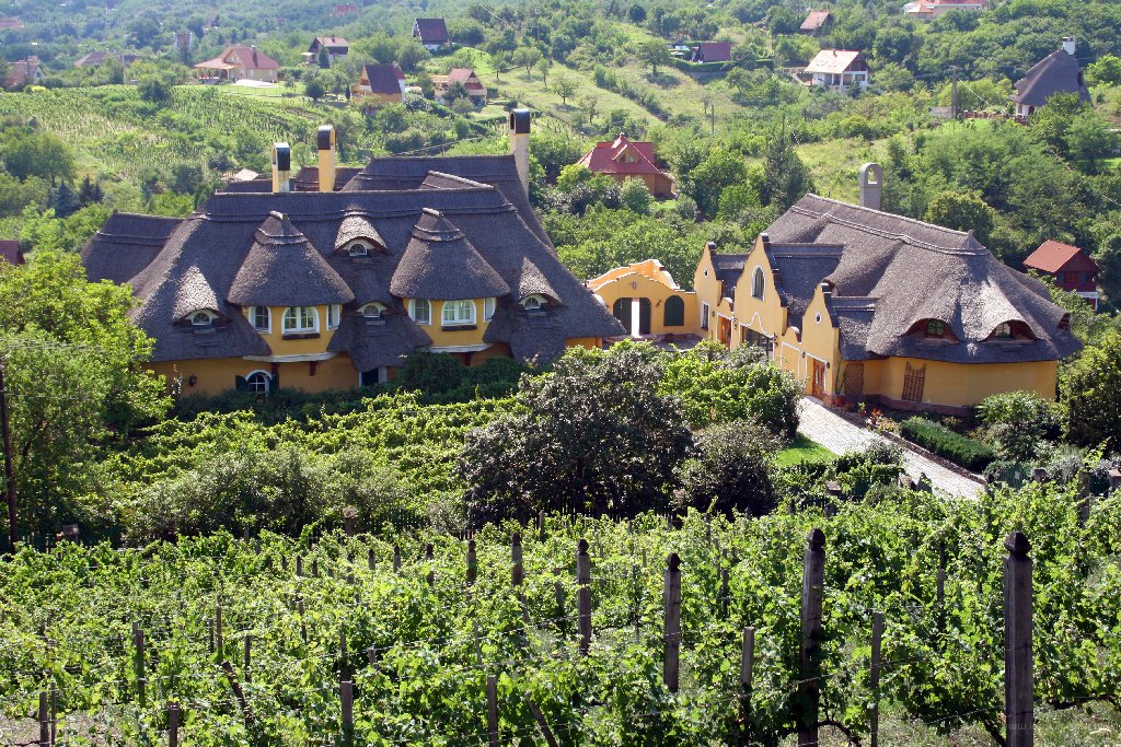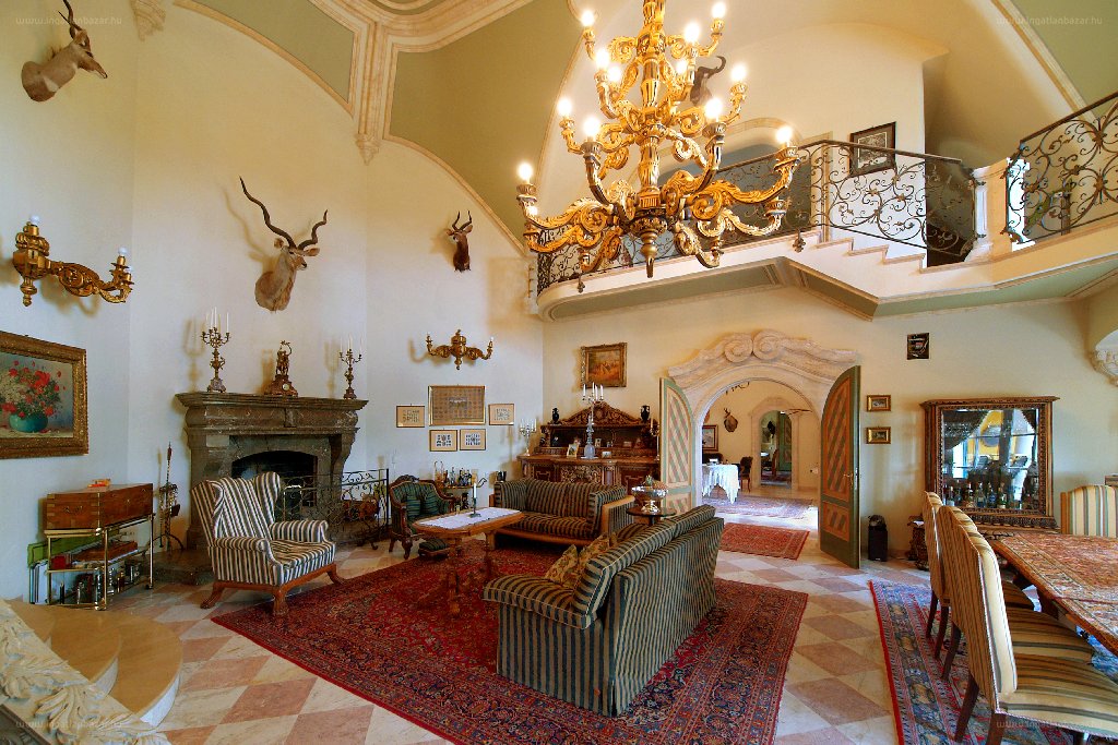 A tervezése és megépítése minden apró részletre kiterjedő figyelemmel, 80 billenő kocsival tereprendezett és gránitsziklába ágyazott betonalappal, tégla falazattal, egyedi poliuretán hab hőszigeteléssel, autentikus szalmatető fedésű osztrák fenyőből ácsolt tetőszerkezettel, hőtárolós gáz-cirkókazán által működtetett padló és radiátor fűtéssel, egyedileg gyártott magas hő és hangszigetelésű Német nemesfa nyílászárókkal, egyedileg faragott és festett fa beltéri ajtókkal, márványból faragott lépcsőkkel és oszlopokkal, márvány kandallóval, valamint márvány, mészkő és nemesfa burkolatokkal, olasz szaniterekkel, szintén egyedileg faragott fa csillárral, ausztriai kovácsolt vas korlátokkal, tömör tölgyfa bejárati ajtóval, angol függönyökkel és drapériákkal, perzsa szőnyegekkel, 6 méter magas kandallós teraszkapcsolatos szalonnal, 12 különnyíló saját fürdőszobával és WC-vel felszerelt lakosztállyal, vendég és cselédszobákkal, klubszobával, étkező teremmel, pincékkel és felszerelt autentikus présházzal, napozóterasszal uszodával szaunákkal szabadtéri 6 személyes jakuzzival és zuhanyzókkal WC-kel felszerelt wellness teremmel, rendkívül időtálló és igényes kivitelezéssel, számtalan bővítési lehetőséggel, és a telek adottságainak maximális kihasználásával épült és került kivitelezésre. Állapota kiváló, folyamatosan karbantartott és időközönként a szükséges felújítások, alakítások el lettek végezve.