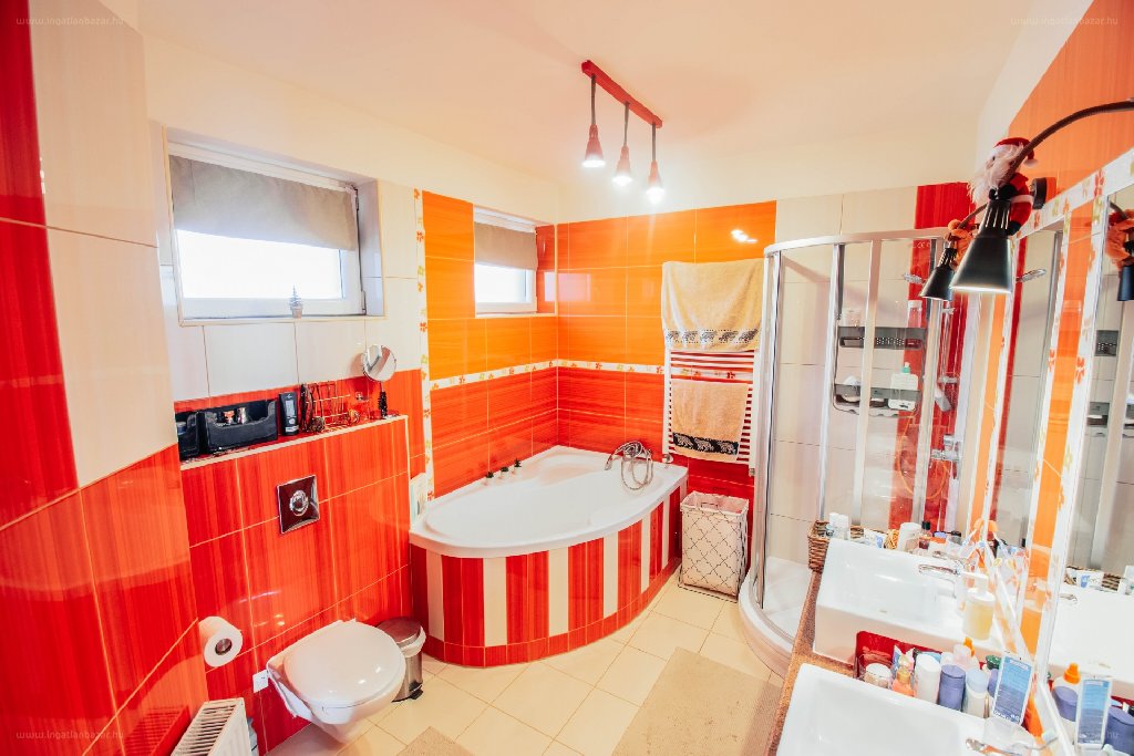 Az ingatlanban a melegérzetet továbbiakban a 15 cm-es külső szigetelés segíti. Az ablakok műanyag nyílászárókkal szereltek. Az elektromos hálózatot réz vezetékek biztosítják, valamint a 3 fázis is kiépítésre került. A gépjárművek parkolásáért egy 36nm-es kétállásos garázs felelős. Az ingatlanba bejutást követően, egy 38 nm-es fényes nappali található, ami ideális minden nyugalmi tevékenységhez. A nappaliból nyíló konyha, minden elvárást kielégít. Az ingatlanban, továbbiakban 2 mosdó és egy fürdőszoba került kialakításra, sarokkáddal és zuhanyzóval egyaránt. Az épület részét képezi továbbiakban 3 hálószoba, 1 dolgozószoba,1 kazánház és egy 14 nm-es közlekedő. A hátsó 40nm teraszról az udvarra jutunk, ahol egy medence került kialakításra, valamint a parkosítás is megtörtént. [...]”