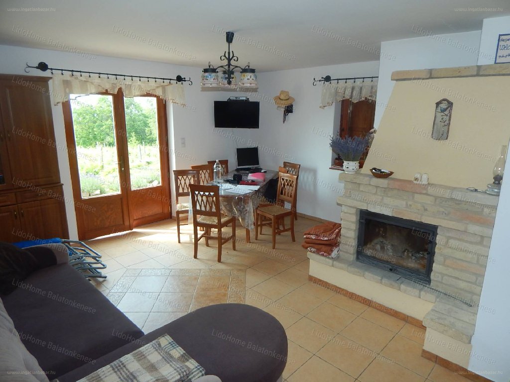 Pince,présház a szőlő feldolgozásához,tárolásához. Az épület burkolatai az alsószinten kerámia járólap,emeleten laminált parketta aljzat valamint borovi fenyő lambéria borítással kialakított szigetelt oldal és födém falak vannak.Belső és külső nyílászárok hőszigetelt mínőségi fából készültek. Kültéren fedett terasz,valamint beton tékövel borított Balatonra örök panorámával rendelkező nyitott terasz! Elektromos hálózat van az ingatlanban,vízellátása jelenleg ciszternás házi vízművel kialakított.A melegvizet villanybojler biztosítja. Szennyvíz elvezetése zárt rendszerű derítő aknába történik. A lakótér fűtése kandallóval történik,mely téli időszakban megfelelő komfortérzetet biztosít. Víz és gázvezeték a telek előtt. A legközelebbi strand 3,5 km-re van az ingatlantól. Közelben étterem. [...]”