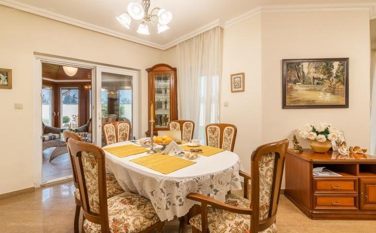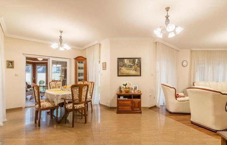 “Mosonmagyaróváron, a Lajta lakóparkban eladó, egy tégla-építésü 225 nm hasznos alapterületű, egyszintes,1080 nm szépen gondozott telken álló, nappali + 4 szobás,dupla garázsos, több terasszal is rendelkező, exkluzív családi ház. [...]