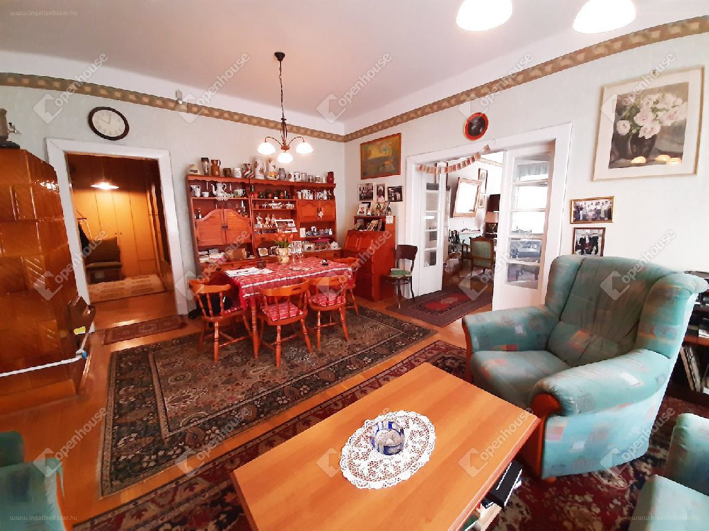 A lakás egészére jellemzőek a tágas terek (belmagasság:300cm), főleg a három nagyméretű szoba, melyek a nagyméretű ablakai végett egész nap fényárban úsznak. A nyílászárók fából készültek, jó állapotú, régi geréb tokos ablakok. Ezen helyiségek fa szalagparkettával burkoltak. 2 szobában Héra, 1 szobában pedig nagy hatásfokú fa tüzelésű cserépkályha szolgáltatja a meleget. A fél szoba (gardróbnak tökéletes), a WC és a speiz ablakai a világítóudvarra azaz lichthofra (egyfajta belső udvarra) néznek. A nagy méretű előszoba jelenleg praktikusan, mennyezetig beszekrényezve! A zuhanyzós fürdőszoba ablakos, a konyhából és az egyik szobából is megközelíthető. A konyha nagy méretű, melyet nagyon jól kiegészíti a speiz. A lakáshoz PINCESZINTEN tartozik egy 19,5M2-ES, PADLÁSSZINTEN pedig egy 30M2-ES SAJÁT TÁROLÓ! […]”