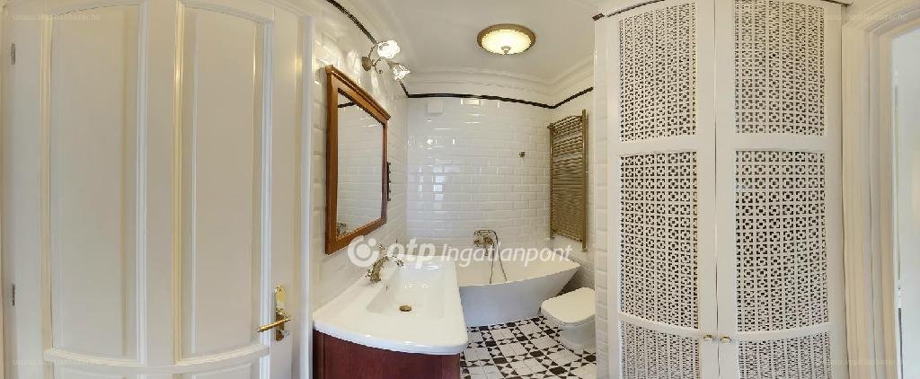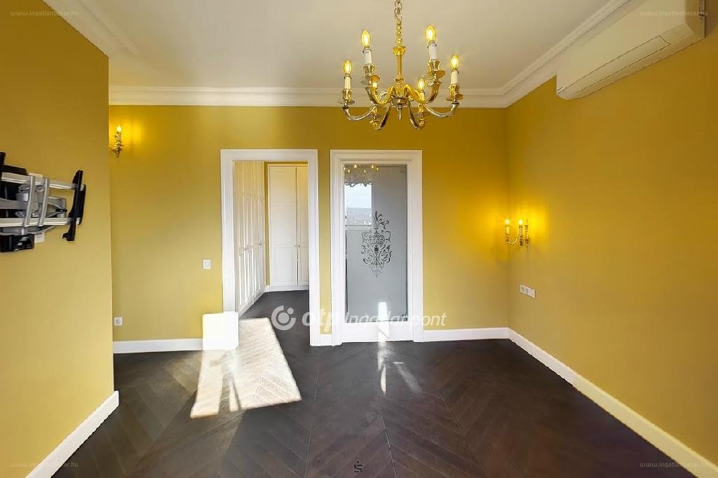 Beltér: A lámpatestek eredeti sárgaréz öntvényből készültek (interiors1900, Fenbridge), melyek Angliából kerültek beszállításra. Az elektromos szerelvények a PRÉMIUM KATEGÓRIÁS Legrand Céliane sorozat tagjai, melyek PORCELÁNBÓL KÉSZÜLTEK. A LÉGKONDICIONÁLÓ kettő Panasonic beltéri egységgel lett szerelve. A padló Prémium - Superior, tömör tölgyfa parketta/svédpadló, 20 mm vastagságú, a legmagasabb követelményeknek megfelelően. A falak és a mennyezet találkozásánál a teljes lakásban (19,5 cm átlójú) korhű holker gipszszegély, valamint 3 db rozetta (2x50cm,1x80 cm) került legyártásra és beépítésre.