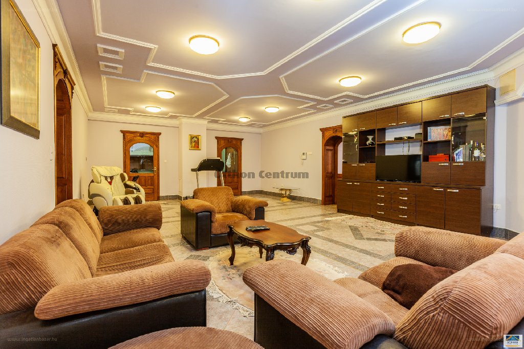 A szuterén szintről még szó sem esett, pedig az itt kialakított 3 állásos teremgarázs, a konditerem, játékszoba és a több háztartási helység valamint a ház szíve, a kazánház is mind a maximális igényesség jegyében került kialakításra. A házban beépített porszívórendszer, ipari klímaberendezés, padlófűtés, Kömmerling hőszigetelt golyóálló üvegezésű fa tokszerkezetű ajtók és ablakok rejtett rolós szúnyoghálóval és elektromos sötétítővel szerelve, biztonsági ajtók, szobánkénti termosztát,mely távvezérléssel irányítható, térfigyelő biztonsági és kamerarendszer lett telepítve, de a felsorolás még korán sem teljes, rengeteg extra lelhető fel ebben az igazán egyedi kialakítású luxuskastélyban! A lakóépületbe telepített technikai eszközök mellett valamennyi burkolat és felszerelési tárgy egyedi igények szerint válogatott, nemzetközileg is csak legfelső lativuszokba sorolható, világszínvonalat képviselő szerkezeti és beltéri anyagok felhasználásával, művészi színvonalú kivitelezéssel került beépítésre. Igényes új Tulajdonosát várja, aki nem csak szereti az exkluzív szépséget,hanem felismeri a magasszínvonalú beltartalmat is, az egyedi belsőépítészeti megoldások hozzáadott értékét is.