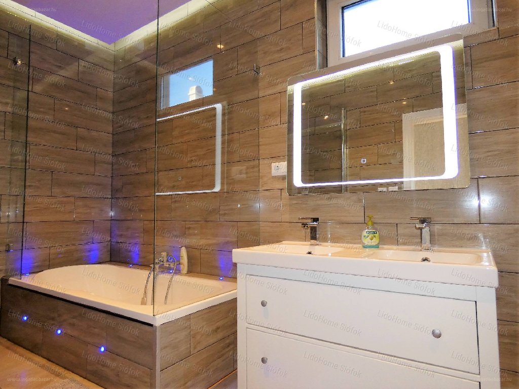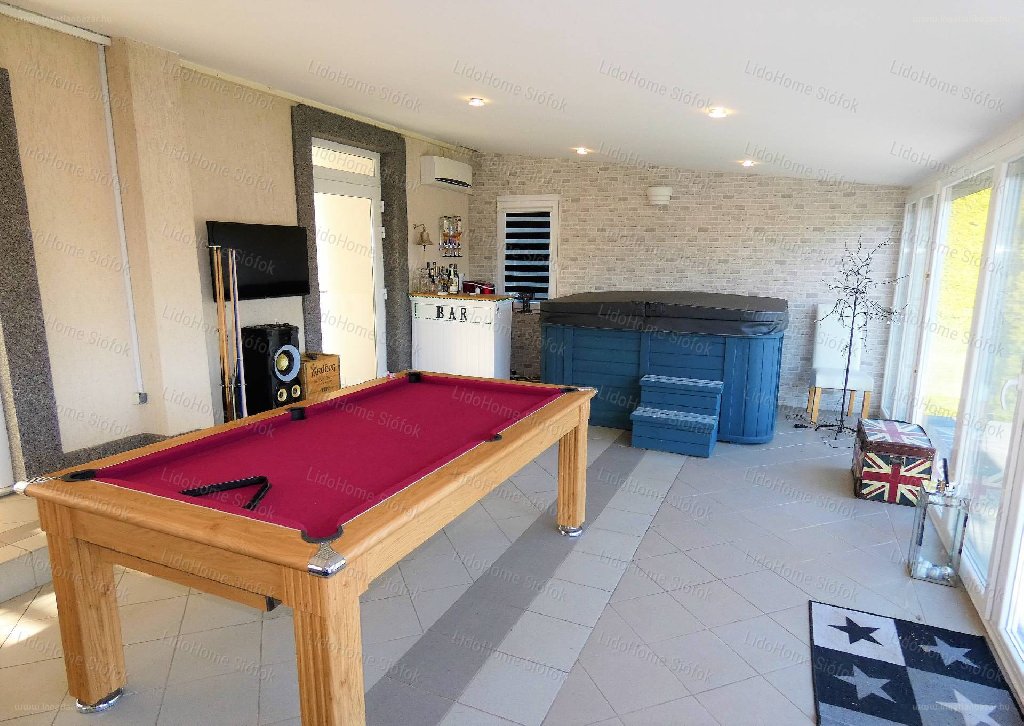 Egy Siófok-Fokihegyen kínált, 350 nm-es családi ház tágas, elegáns terekkel, a hirdetés alapján angolszász életérzéssel várja új tulaját. Kibiceljen velünk a helyi ingatlanpiac kínálatának egyik 355 milliós otthonában! “Az 1996-ban épült, 2016 – ban kiváló minőségben teljes körűen felújított, nagyméretű teraszán medencével rendelkező lakóépület Siófok-Fokihegy városrészének csendes utcájában, 806 m2-es ingatlanon helyezkedik el. Belső kialakítása a nagy terekkel és a kiegészítőkkel együtt különleges harmóniát biztosít a benne lakóknak. Télikertjéből szép kilátás nyílik a szépen ápolt kertre, ahol egy új építésű, kb. 30 m2-es jól felszerelt grillező faépület emeli a kerti partik hangulatát. A szuterén részben kétállásos gépkocsi beálló – amihez egy új állapotú gépkocsi emelő is tartozik - szauna és egy kis pince is található. A nagyméretű nyílászáróknak köszönhetően ezen napfényben úszó, családbarát kialakítású, tágas terekkel, nagy terasszal rendelkező, prémium anyagok felhasználásával felújított, energia takarékos, 2 nappali + 5 szobás + 6 fürdőszobás családi ház további jellemzői: