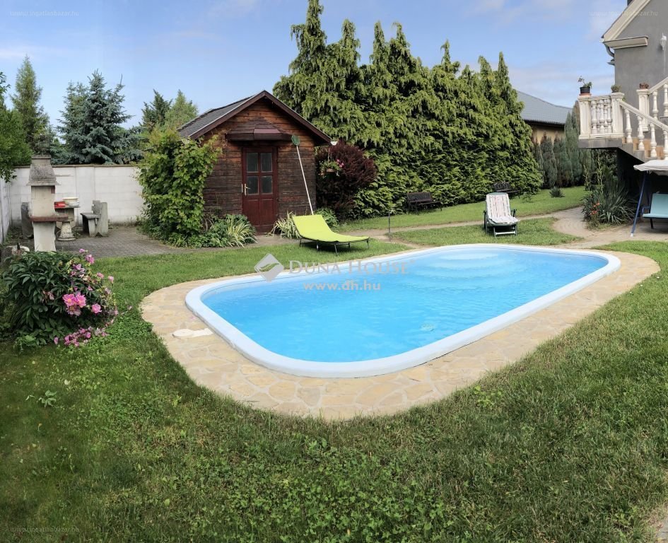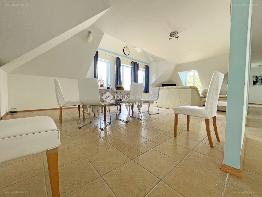 Felső szint külön manuális tolókapus bejárattal.2 szoba 2db szimpla, duplává alakítható ággyal,1 szoba 2db szimpla ággyal,1 szoba 2db szimpla duplává alakítható ággyal, 1db dupla ággyá kihúzható kanapéval,1 nappali dupla ággyá kihúzható 3-as ülővel, egybe nyitott ebédlővel és amerikai konyhával,1 fürdő káddal és külön zuhanyzóval, wc-vel,1 fürdő hidramasszázs zuhanyzóval, wc-vel,1 mosókonyha.Teljes értékű, teljes alapterületre kiterjedő padlás nagy belmagasságokkal, végig deszkázva, pakolható.Pince a kerti tároló alatt benne a medence gépészettel.Medence: 5mx3mx1,5m, 22.5 m3.Telekterület 980m2. Lakóterület 150m2 + 150m2.Parkolás: kapukon belül 2-3 autó, utcán további 4-6 autó.Budapest 45km, Székesfehérvár 20km, M7 autópálya 2km [...]”
