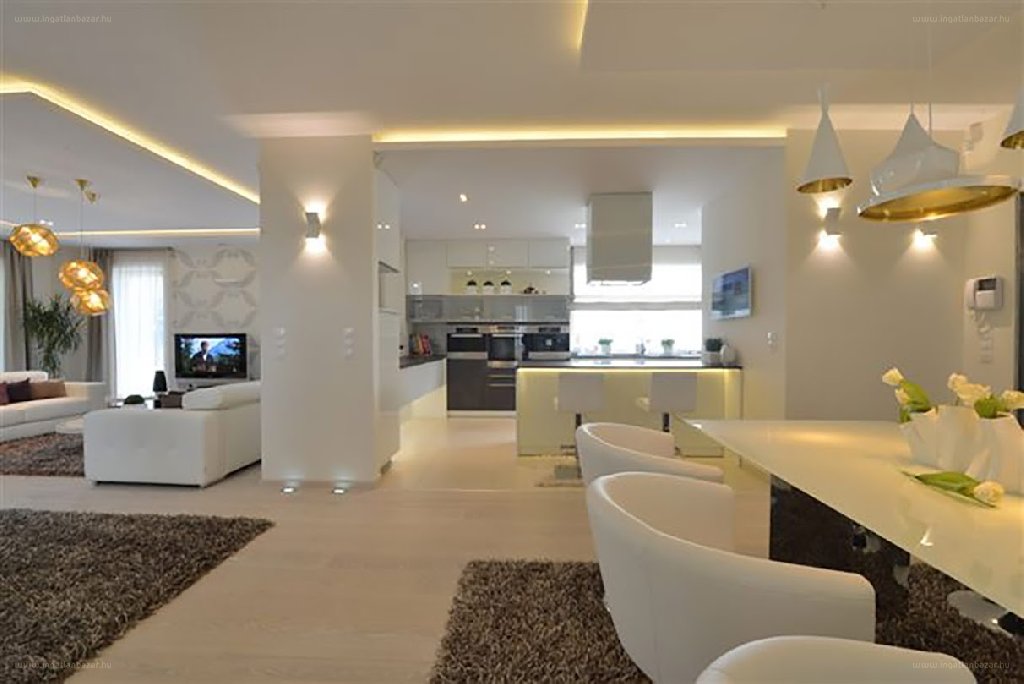 - felső kategóriás MIELE gépek, különleges konyha, üveg ajtófrontokkal, egyedi svédpadló, csodálatos szaniterek, csempék, lámpák stb.,