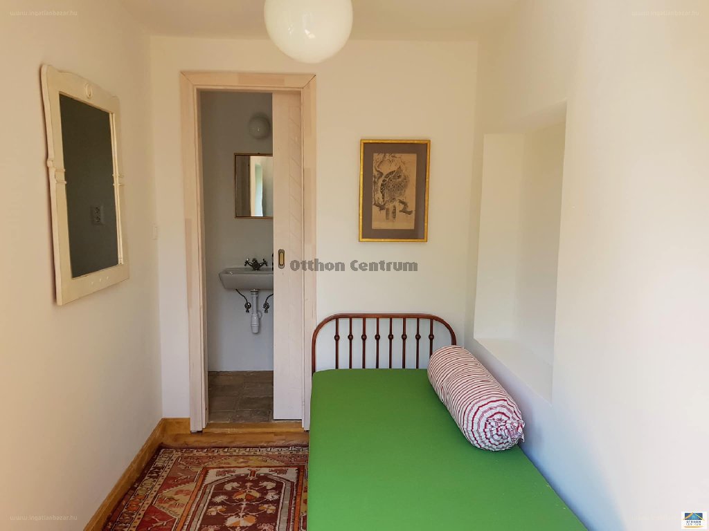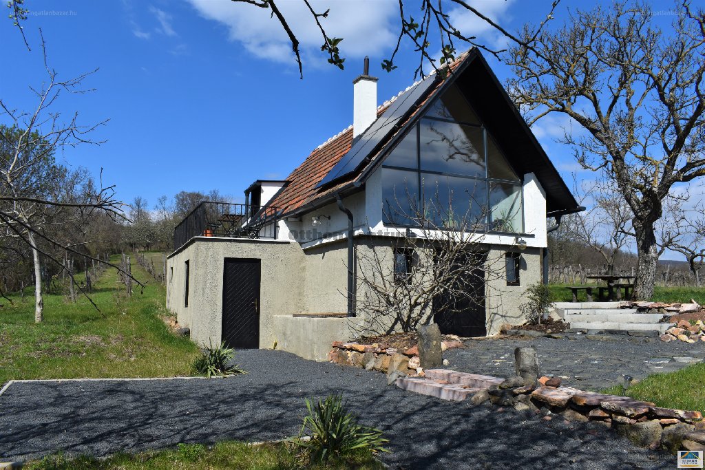 "A Kőtengertől egy kőhajításnyi távolságra , a déli fekvésű Farkastetőn , várja új tulajdonosát egy autentikus nyaraló. A vegyes falazattal épült ( kő, tégla ) ház 2021 -ben teljes körű felújításon esett át , modern , letisztult stílussal simul bele mesés környezetébe. A kétszintes nyaraló felső szintjén egy nagyméretű hálószoba, fürdőszoba , terasz található. Az alsó szint kis szoba, konyha,mosdó, borospince elosztással rendelkezik. A nagyméretű,üvegfal a Káli medencére és a környező hegyhátakra nyújt csodás panorámát. Az áramot napelem biztosítja , tartályos víz van jelenleg, az ellátás kút fúrással megoldható.