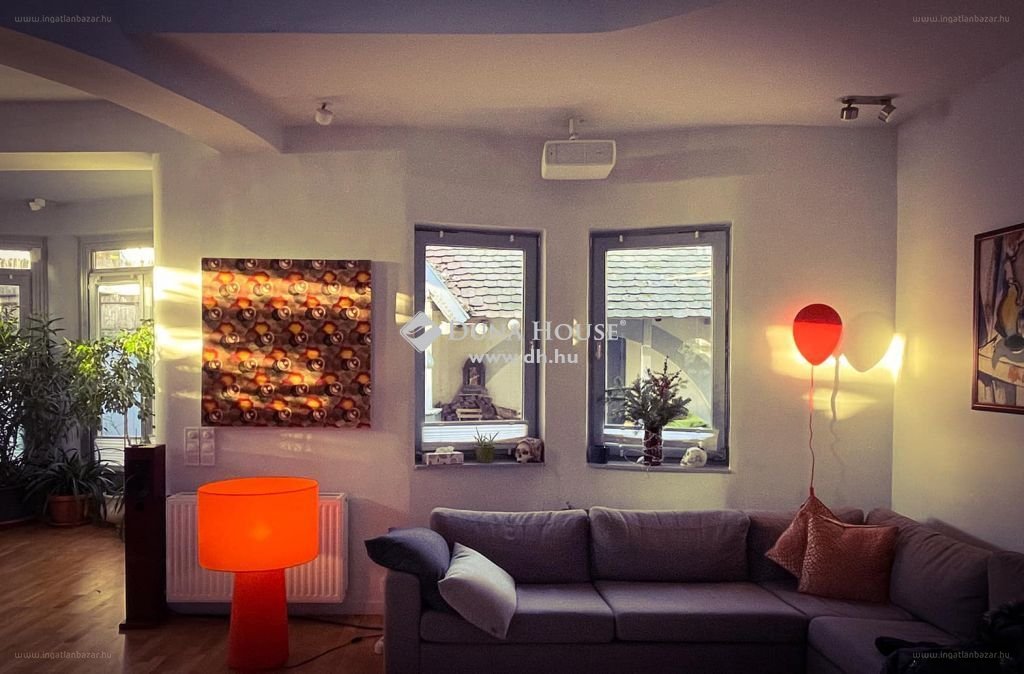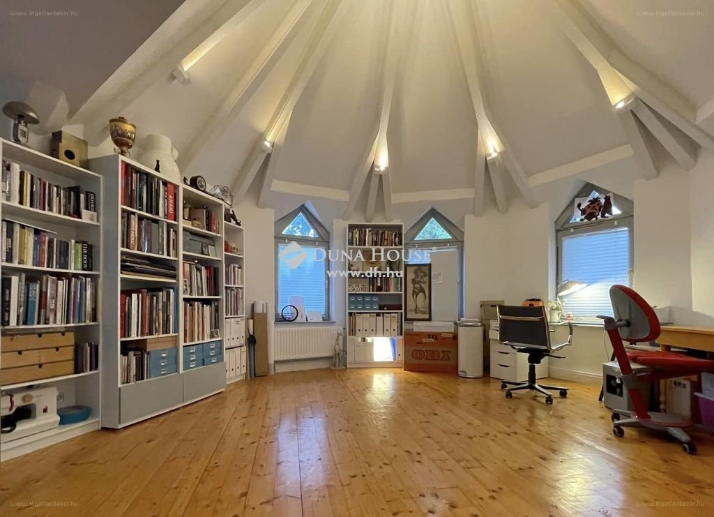 A főépület a 19. század végén épült vadászháznak és ezt bővítették ki a 80-as években és alakították át három lakásos társasházzá. Egy L alakú épületet kell elképzelni, melynek az egyik szárán található az ingatlan. A földszinten kertkapcsolatos óriási élettér ad lehetőséget akár egy nagyobb családi, vagy baráti összejövetelre: a hatalmas nappali, télikert és konyha - étkező igazi közösségi tér ! A galéria miatti nagy belmagasság tovább fokozza a tágasság érzetét. A földszinten található még egy vendégszoba és fürdő. A kandalló mellől induló lépcső a galériára vezet, ahol újabb, immár privát nappalit találunk, illetve három kényelmes hálószobát, valamint fürdőszobát, wc-t. A saját kert további ajándékokat rejt: borospincét és nyárikonyhát a kerti partyhoz ! Sőt, még egy gyerekkuckó is helyet kapott a nyári konyha felett ! A család éppen nem használatos tárgyai elférnek a főépület alatt található, kizárólagos használatú, 17 nm-es száraz pincében. Mivel ennek a helyiségnek ablakai is vannak, így akár konditerem is kialakítható benne !