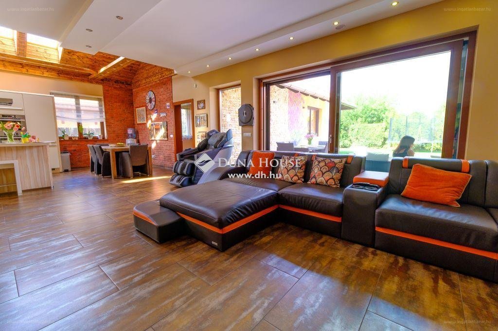 A Vecsésen található exkluzív, 240 négyzetméteres ház körülöleli a teraszt és a belső kertet. A hatalmas tereket kedvelők imádni fogják, az étkező fölötti 5 méteres belmagasságról nem is beszélve. A helyi ingatlanpiacon közétett fotókon a nappaliban kiszúrtunk egy masszázsfotelt is, sajnos az nem derül ki a hirdetésből, hogy ár részét képezi-e.