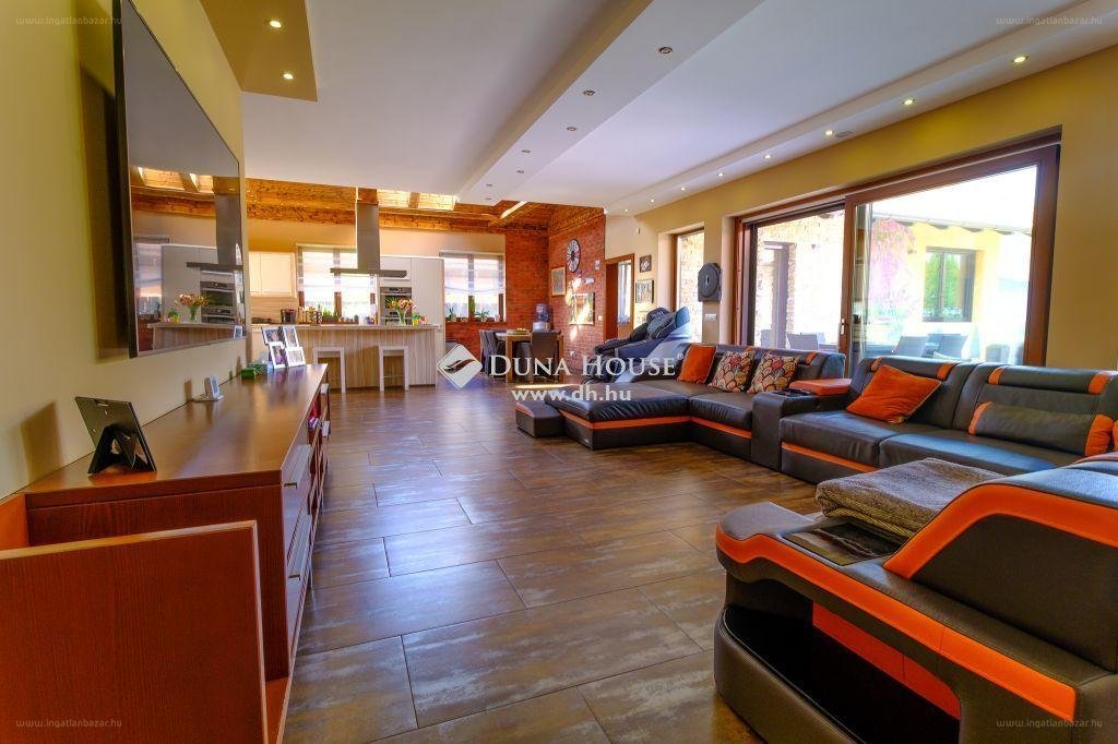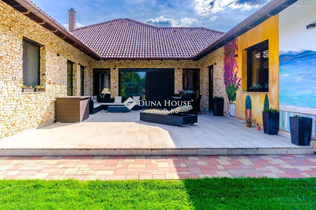 A kialakításának köszönhetően a ház körül öleli a teraszt és a belső kertet, így becsempészve a természetet a mindennapjainkba. 21. századi stílusa mellett, számos modern, kényelmi tulajdonsággal is rendelkezik a ház, beszerelésre került riasztó, kamerarendszer, SOMFY elektromos alumínium redőnyök, DITEK motoros elektromos kapu beálló, kialakításra került rekuperátor szellőztető, központi ELEKTROLUX porszívó, kívülről alumínium, belül fa minőségi nyílászárók, valamint napkollektor, geotermikus fűtés rendszer, fúrt kút, vízlágyító rendszer, valamint öntözőrendszer is! Baráti időtöltésre remek alkalmat teremt a kert! Ha Ön szereti a luxust, az igényes kivitelezést, a minőséget, itt minden álmát megtalálhatja, jöjjön el, és szeressen bele, ebbe a lehetőségekkel teli házba! Lokációját és infrastruktúráját tekintve is remek választás! Csapjon le a lehetőségre gyorsan! [...]”