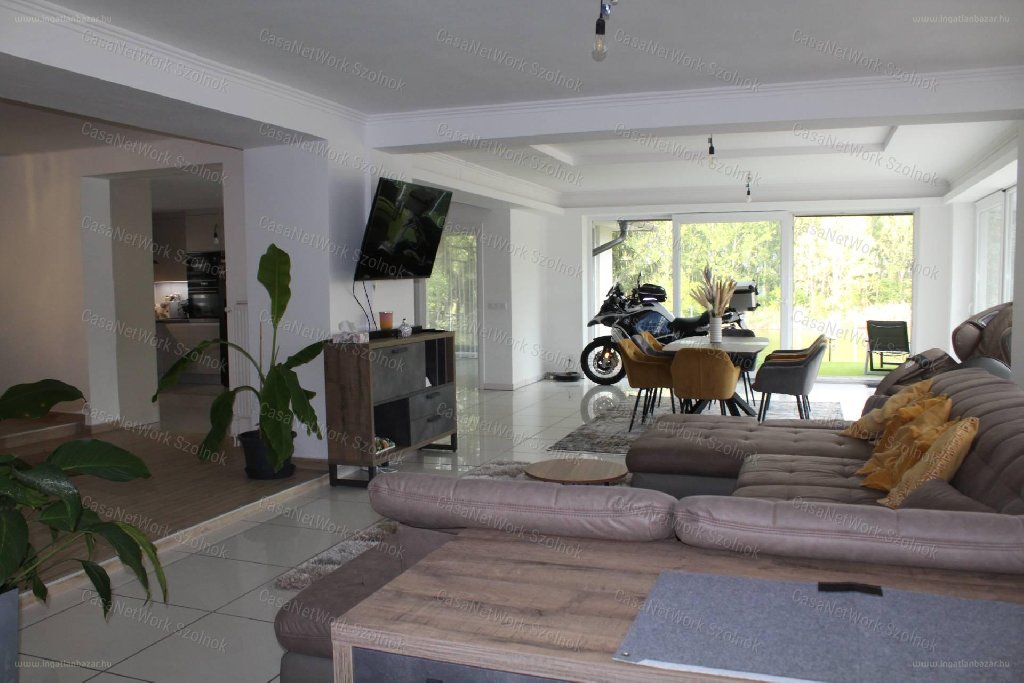 “A szolnoki CasaNetWork Ingatlaniroda megvételre kínál egy közvetlen Holt-Tisza parti ingatlant Szolnokon. Családi ház jellemzői:- 1980-as építés, kiváló állapot- 2022-ben az ingatlan felújítása megtörtént, - praktikusan kialakított belső elrendezés, külön nyíló komfortos szobák- tágas, világos közel 30m2-es Holt-Tiszára néző amerikai konyhás nappali és hálószoba- 3 és 1 félszoba, amiből a hálószoba 20 m2- 2 fürdőszoba, külön illemhely- padlófűtés, radiátoros fűtés - légkondicionáló mindkét szinten- az épület észak-déli fekvésű,- hatalmas nyitott terasz, kerti bútorok kerti partik számára- nyári kánikulában a Holt-Tiszán saját stég biztosítja a hűsölni, sportolni vágyókat- riasztó- hőszigetelt falazat, műanyag nyílászárók redőnnyel, szúnyoghálóval- elektromos kapu- térkövezett széles udvar, parkosítás, - két autó beállásra alkalmas garázs (34m2), tároló- a telek pontos nagysága 900 m2PINCE:341 m2-es amely vállalkozásra is alkalmas [...]”