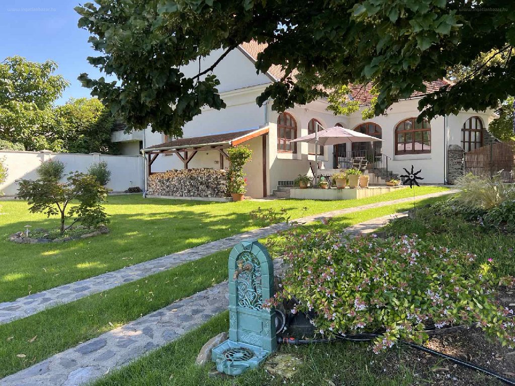 A falu szívében, ennek térré szélesedő középső részén, kis magaslaton áll a ház, idilli környezetben. Az eladásra kínált ingatlan nem csak elhelyezkedése miatt különleges. Az egyedi, kúria jellegű lakóház a Makovecz-csoport építészeti tervei alapján készült. Tulajdonosai 2020-ban teljes felújítást végeztek az épületen és egy olyan mini botanikus kerttel vették körül, amely tovább emelte az ingatlan különlegességét. Minden szegletéből a béke és nyugalom árad. Tágas terei kellő helyet biztosítanak otthont kereső több gyermekes családok és kikapcsolódni vágyó, vidéki elvonulóhelyet keresők számára is.