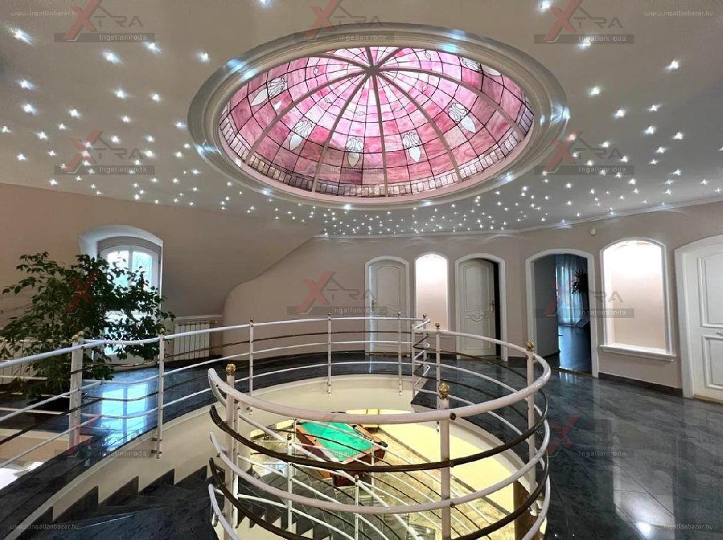 “Tiffany üveggel és csillagos égbolttal díszített kupolával” is fel van szerelve a most következő, 279 millió forintért kínált családi ház
